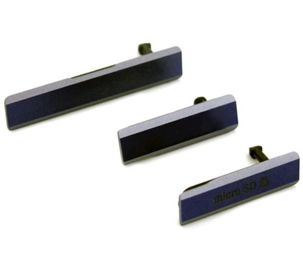 Conjunto de tapas laterales de Sony Xperia Z1. Disponible en varios colores, este kit se compone de la tapa de jack USB, ranura para la tarjeta microSD y la tapa de la tarjeta SIM.