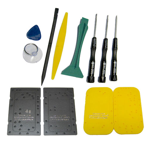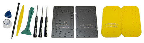 Con este kit de herramientas tendrás todo lo necesario para reparar tu iPhone 4, 4s y 5. En este kit encontrarás unas placas con agujeros donde podrás colocar cada tornillo que saques y asi tener controlado donde estaba cada uno de ellos.
