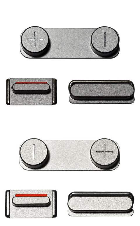 Repuesto del conjunto de botones del iPhone 5S / SE. Se compone del botón de encendido, el de silencio y el de subir y bajar el volumen. Perfecto para la sustitución de piezas dañadas en el último modelo de smartphone de Apple.