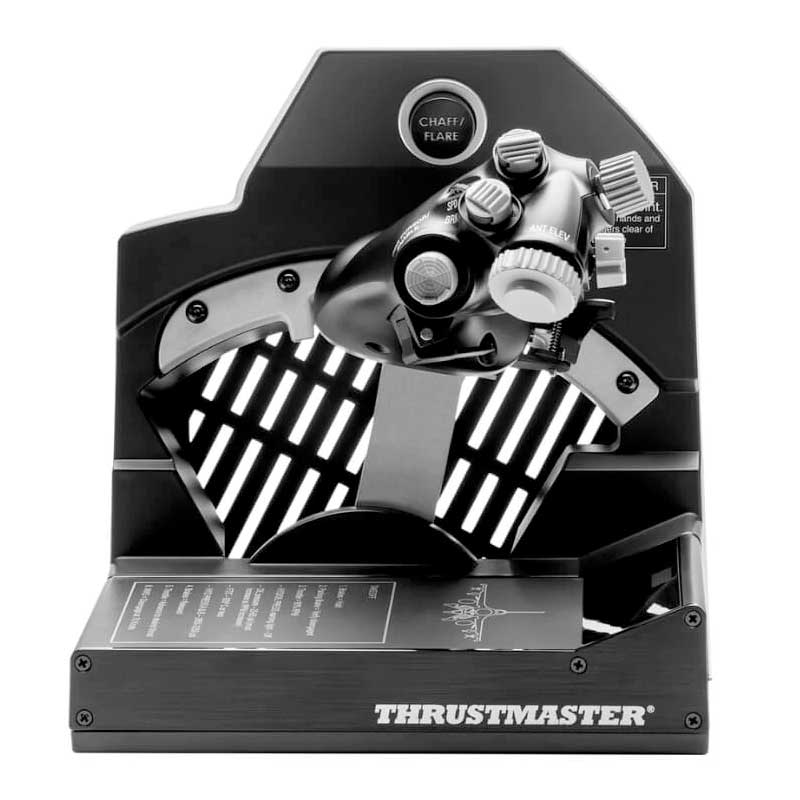 El Viper TQS cuenta con perillas de control metálicas que te permiten ajustar la velocidad, la altitud, el rumbo y otros parámetros de vuelo con precisión y realismo. También tiene un pulsador Chaff/Flare que te da la opción de lanzar contramedidas para evadir los misiles enemigos o distraer a tus adversarios. Además, tiene interruptores de apagón que te hacen sentir la fuerza G y el estrés que sufren los pilotos en las maniobras extremas.